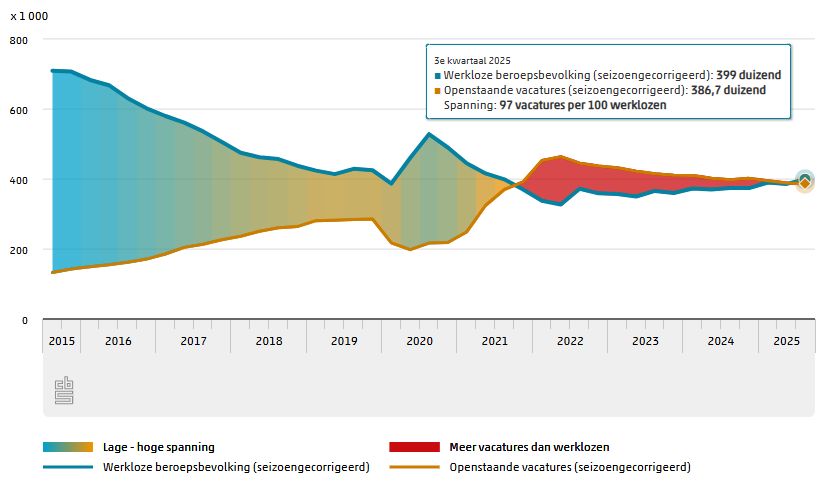 Voor het eerst in jaren zijn er iets meer werkzoekenden dan vacatures. Volgens CBS staan er nu 97 vacatures tegenover 100 werklozen. Dat is een duidelijk kantelpunt. Krapte opgelost? Helaas niet, maar er ontstaan wel kansen.